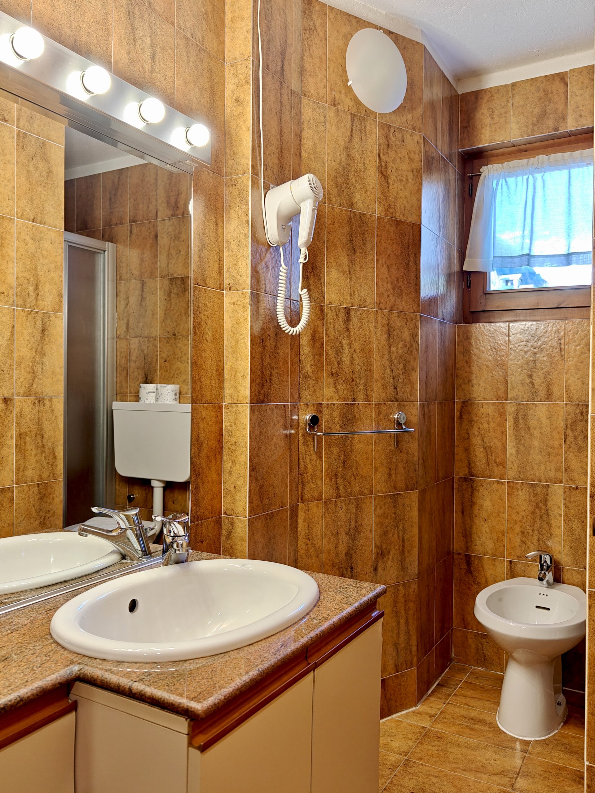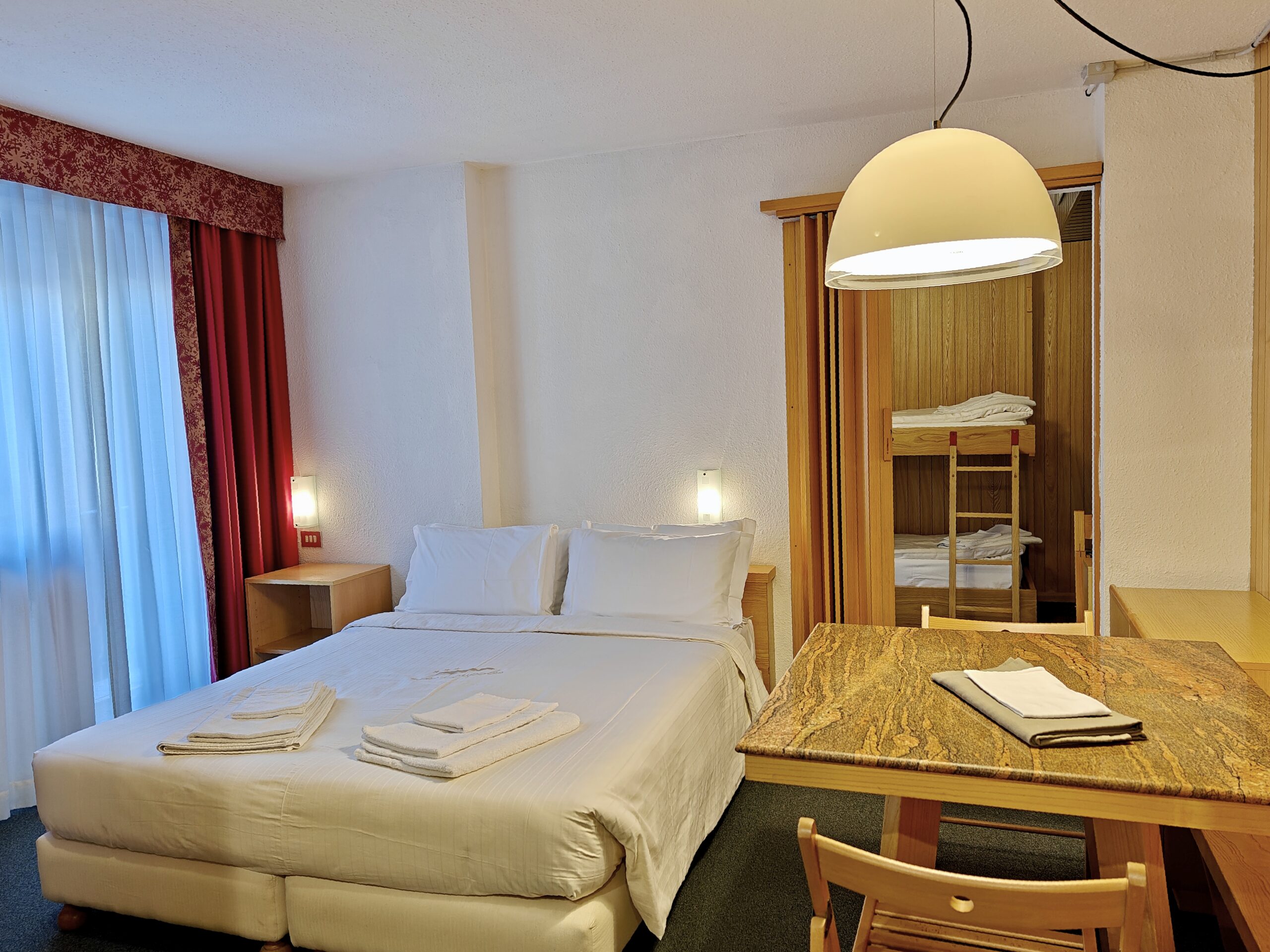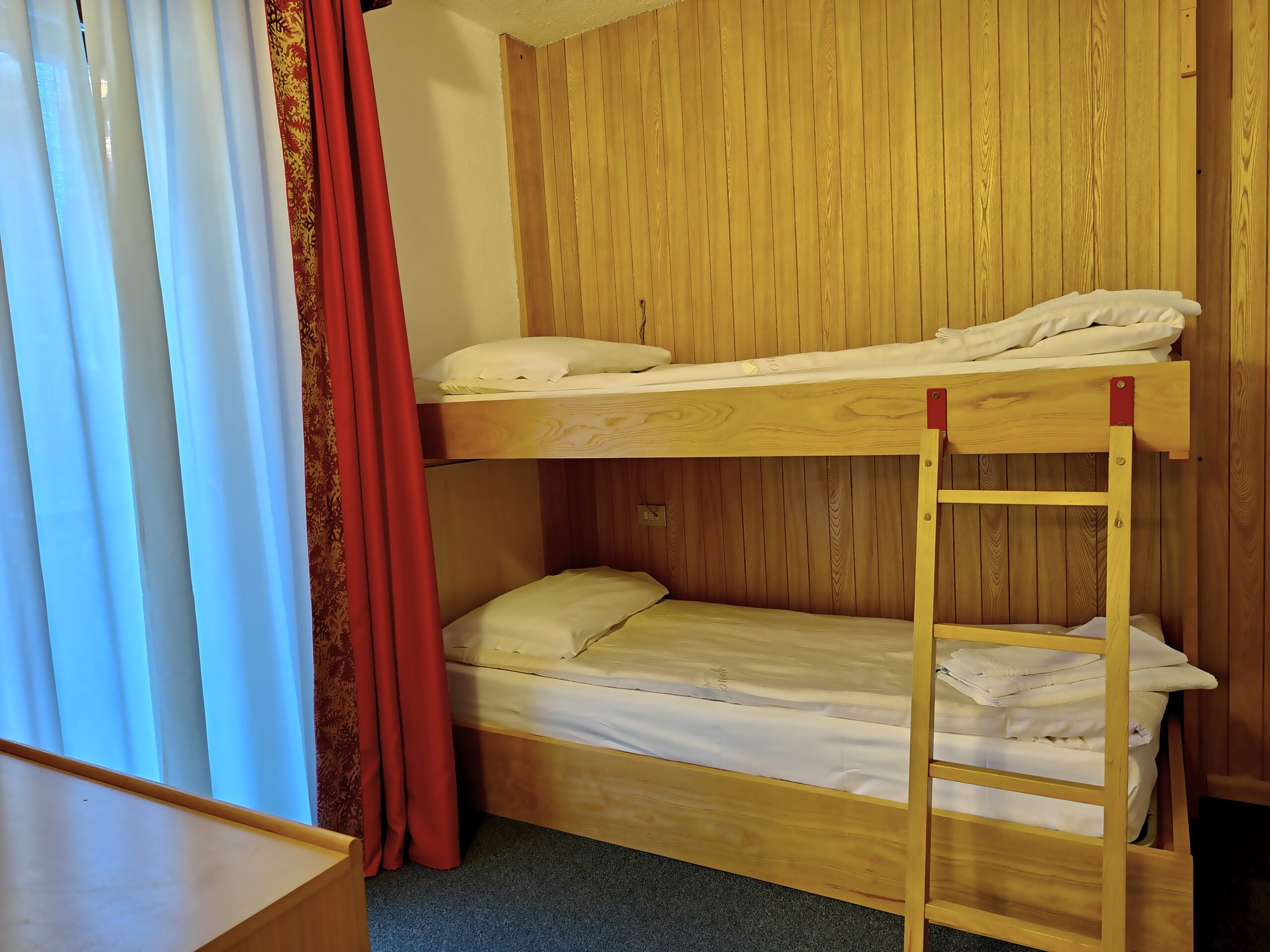 Appartamento composto da due vani: camera con letto a castello, soggiorno con letto matrimoniale, tavolo, piccolo angolo cottura attrezzato e con induzione, bagno con doccia.