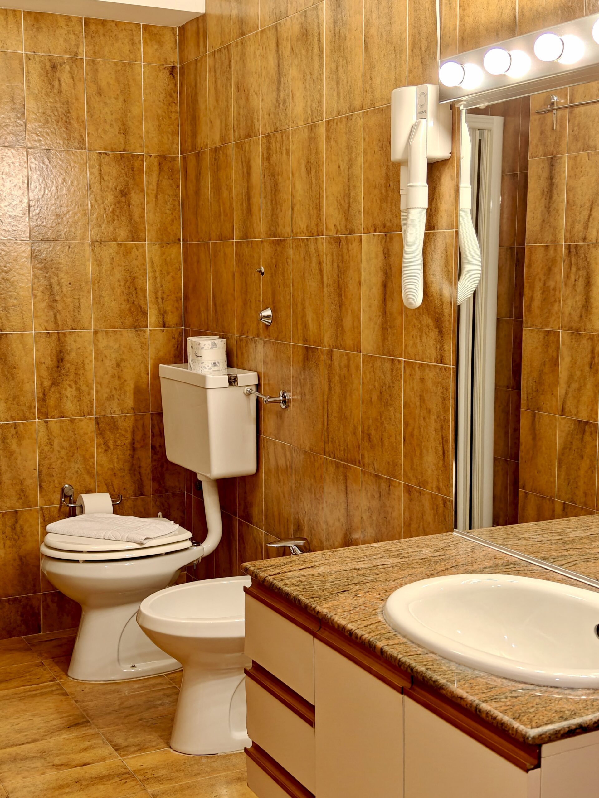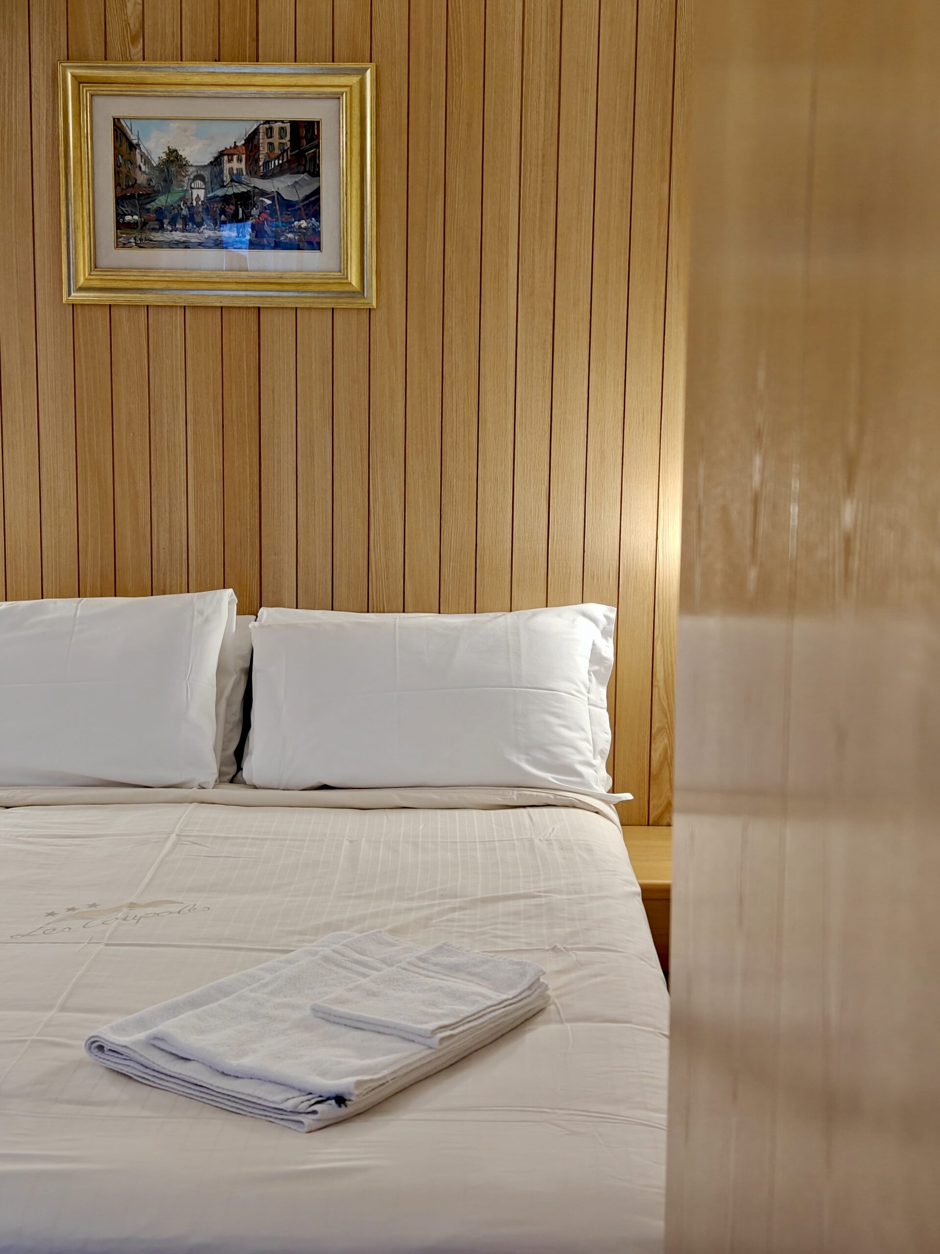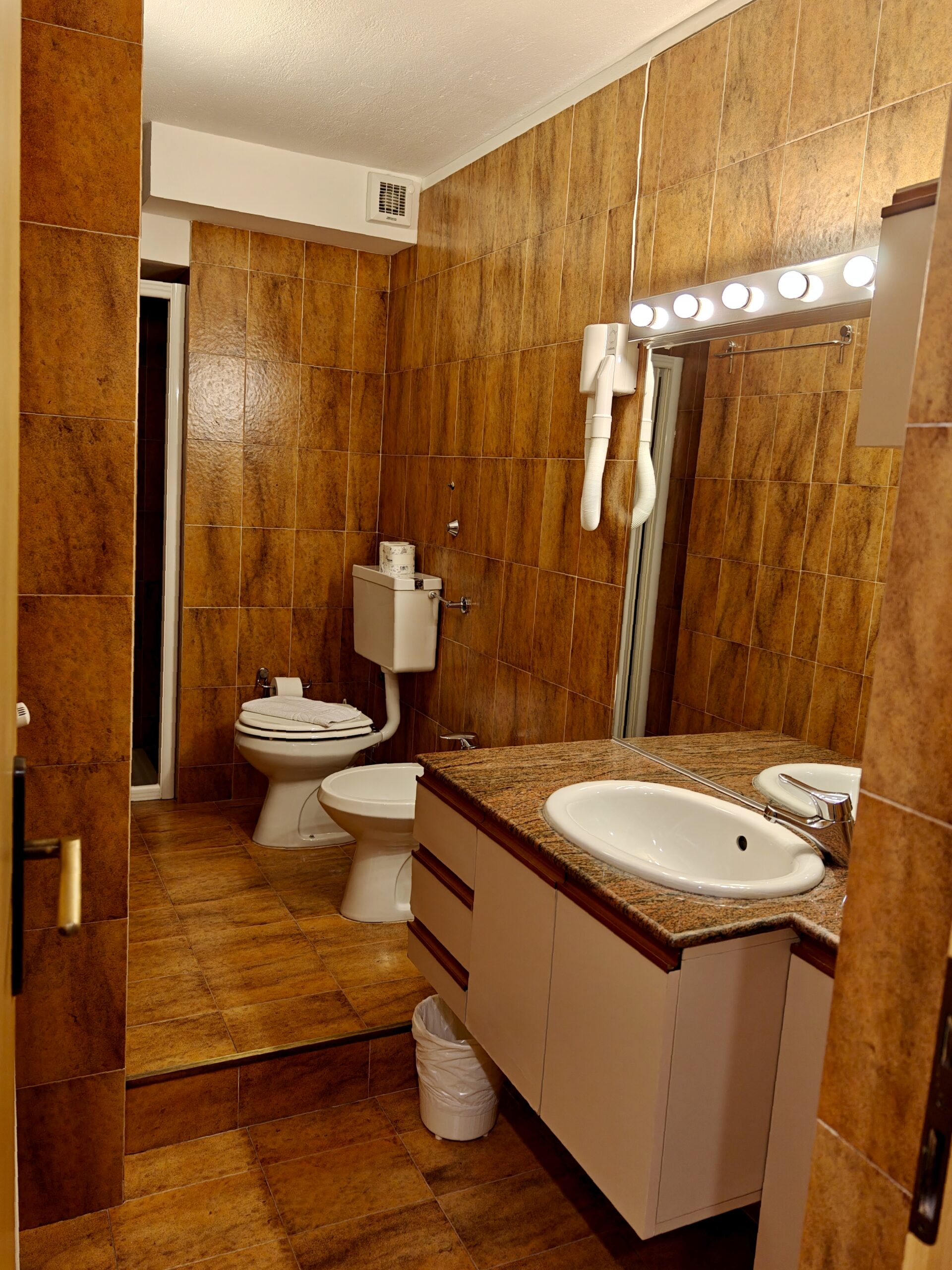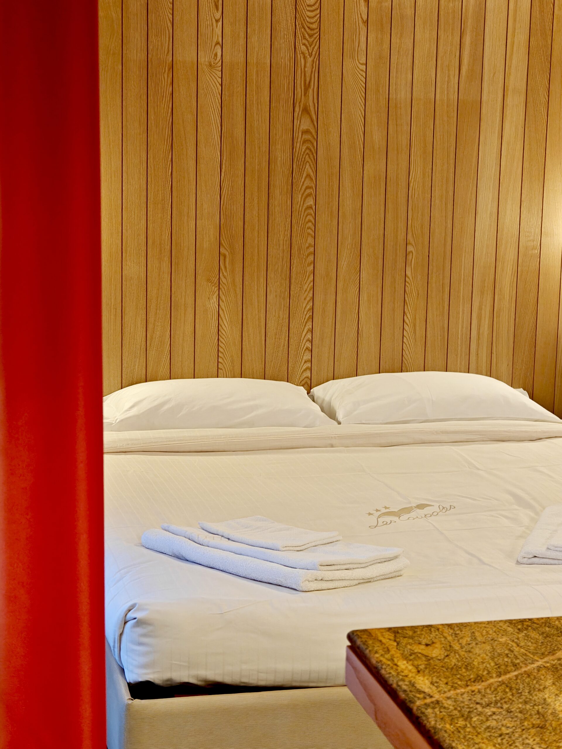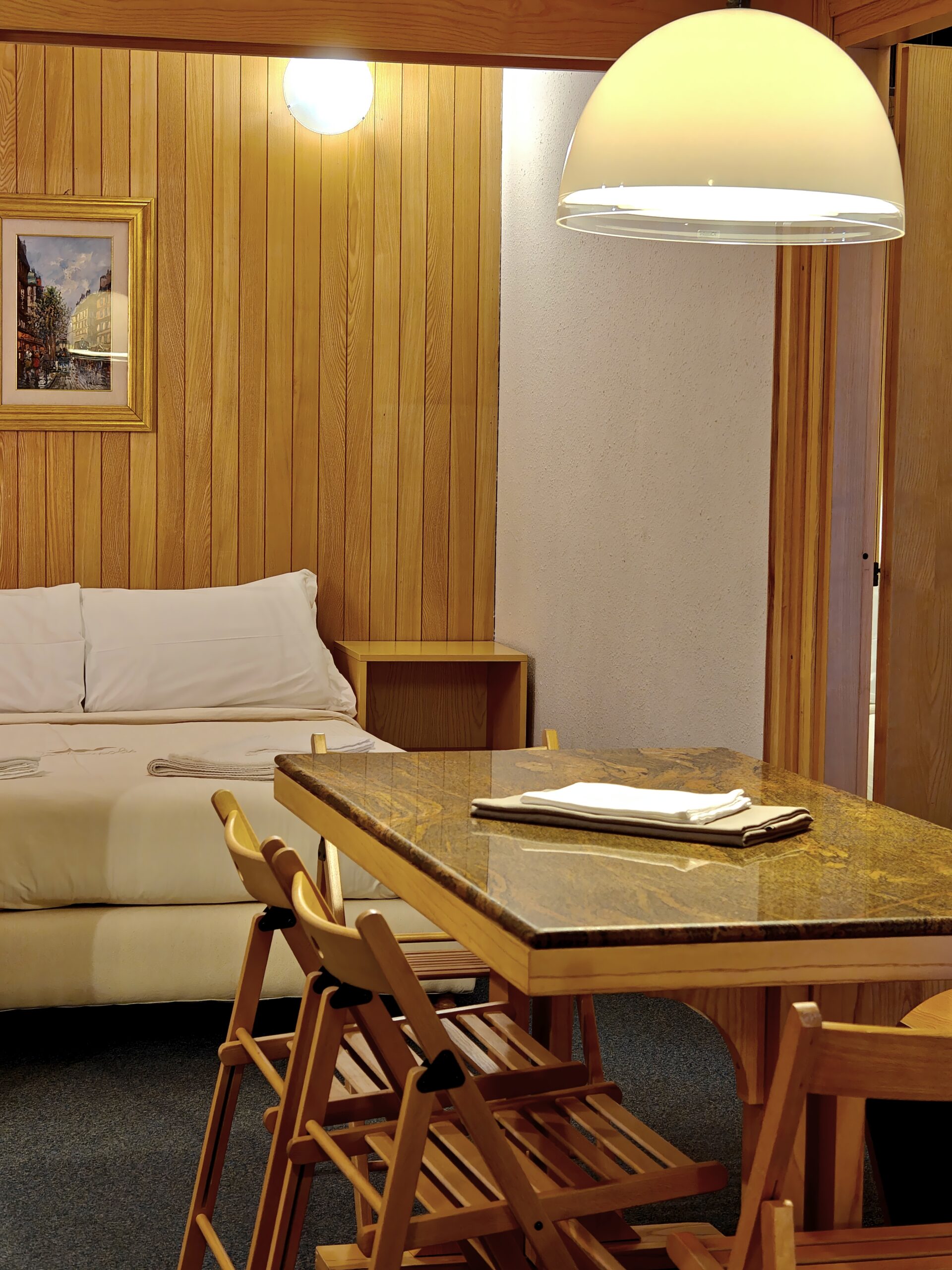 Appartamento composto da tre vani: camera ceca con letto matrimoniale, camera con un letto matrimoniale o con due singoli su richiesta, soggiorno con divano letto matrimoniale, tavolo, piccolo angolo cottura attrezzato e con induzione, bagno con doccia, balcone.